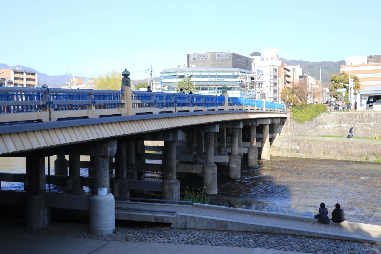 歩行者/車のいずれも通行量が多い橋ですが、訪問時は工事中ということもあり歩道は狭く通行は一列になって歩くような形となっていました。橋の途中から見える鴨川の景色や池田屋事件の際についたと言われる刀傷などの見どころはありますが、混雑時は立ち止まらずに目で見て楽しむのが賢明。一応、橋の脇からは河川敷に降りられるようになっておりそこから橋の全景を眺めるのも良さそう。(工事中でネットなどの覆いがありますが・・・) 市営地下鉄や京阪の山上駅、市営/京阪バスのバス停もありアクセスはそこそこ。