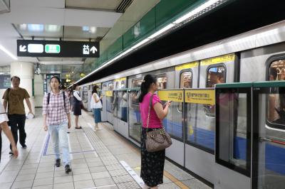 メトロでは青の板南線と赤の淡水信義線が乗り入れています。