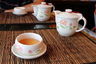 お菓子が4個とお茶(ホットorアイス)のお代わりが自由なもので値段は300元です。