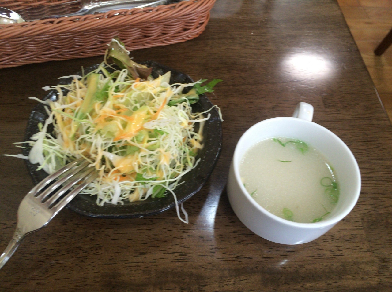 ランチ時間帯はランチメニューがあり、餃子とごはん・サラダ・スープがついたものがセットになっているものがあります。餃子はパリッとした食感で最後まで美味しくいただきました。