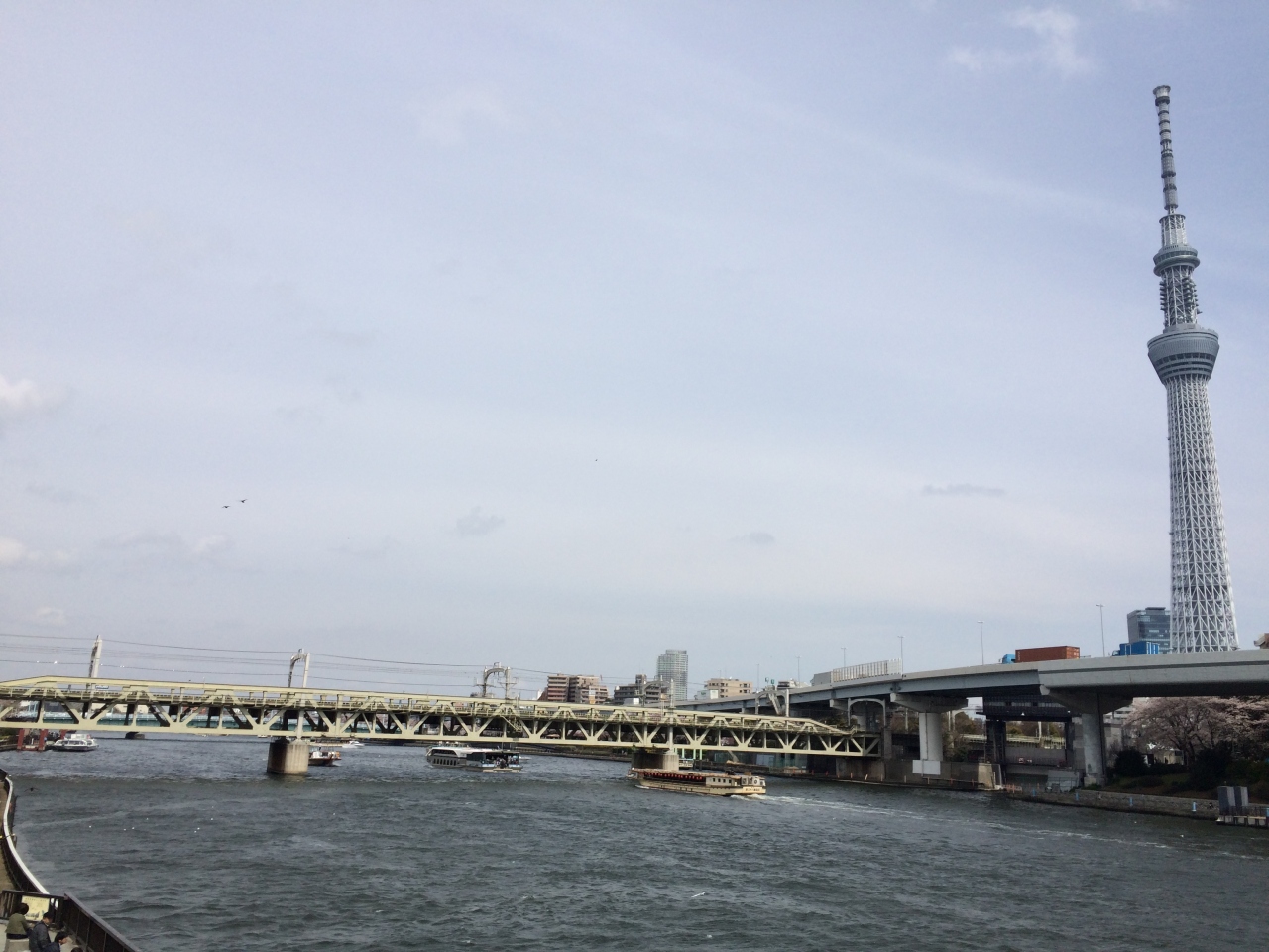 この付近には東京スカイツリーが立っており、春になると川岸に咲く桜との2ショットを求めて多くの人が写真を撮りに来ます。