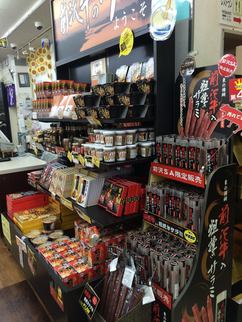 駐車場から建物は階段をあがり、食事やお土産屋のスペースを通り抜けていく形になります。