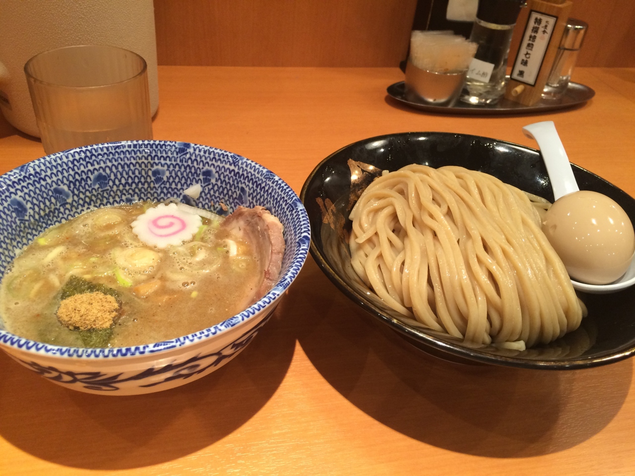 つけ麺は太く、しっかりとした歯ごたえでお腹によく溜まります。