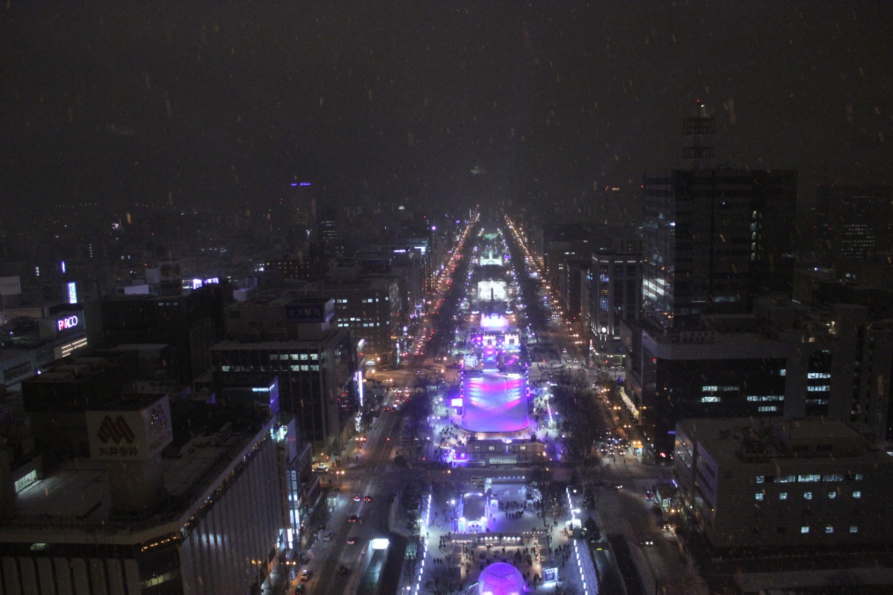 雪まつりの時期は特に夜が上がるのにとにかく時間がかかりぎゅうぎゅうの中ではありますが、ライトアップした雪像を上から見ることができて、かなりオススメです。
