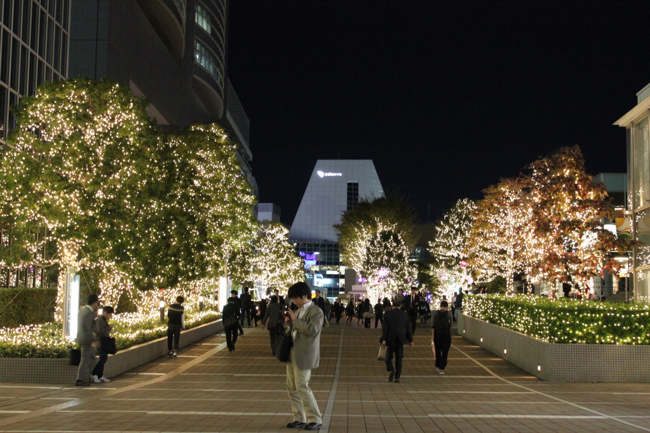 小田急は南口から甲州街道を渡ってすぐ、JRは新南口を出てすぐの所から歩道に広がっているイルミネーションです。