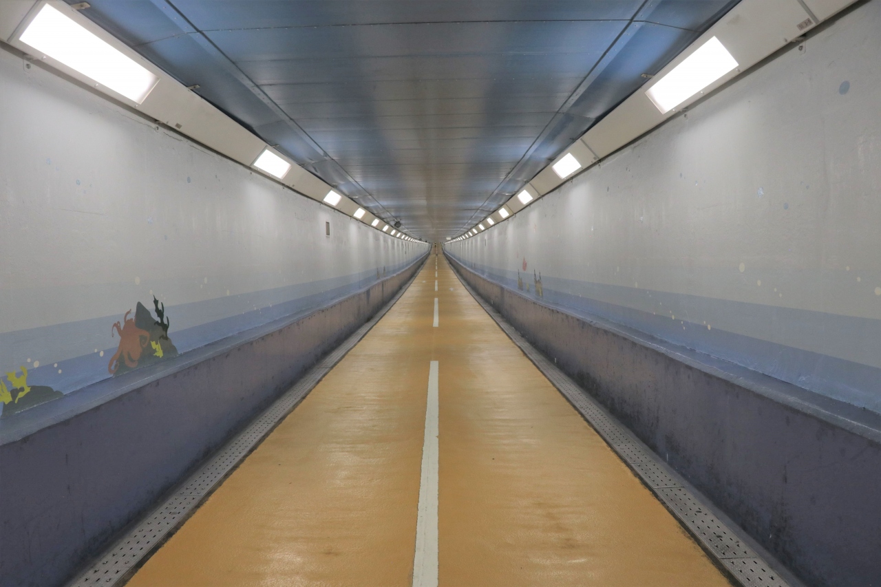 本州~九州だと航空機をはじめ新幹線・在来線・バス・自家用車など様々な移動手段がありますが、そのうち陸上で移動する経路としては新幹線と在来線で各1本、国道と人道(徒歩)で各1本の計4本のトンネルがあります。島国である日本といえども海峡を挟んだトンネルはここ関門海峡と青森~北海道の津軽海峡のみで、しかも歩いて渡れるのはこちらだけなので機会があればぜひ渡ってみてほしいところです!