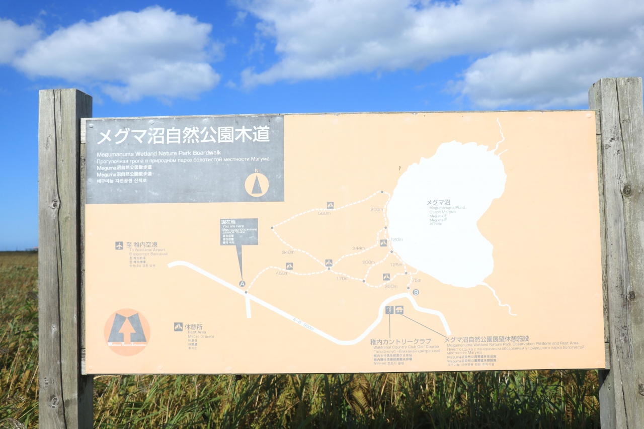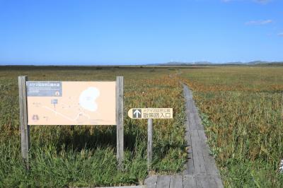 稚内空港からほど近い場所にあり、海沿いを走る国道からは脇道にそれてアクセスする形となりますが(空港を目指して進みターミナルを過ぎた先辺りにあります)、立地面は悪くはないかと。入り口部分から木板で遊歩道が整備されており一面の平野(というほどではありませんが)を散策することができるようになっていました。タイミングが良いと植物などが見られるようなのでその辺りに造詣が深いとより楽しめるかもしれません。