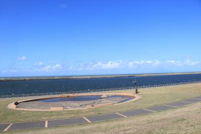 日本海側に注ぎ込む河口付近にあります。一角だけかなと思いきや幅が広く散歩やジョギングができる道路が整備されていました。他にもちょっとした広場や休憩用のベンチもあるので雄大な景色を見ながらのんびりと過ごすことができる場所となっています。天塩川の役割をはじめとした解説もありちょっとした勉強にもなるかもしれません。