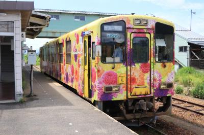 全区間乗り通すと1時間弱かかり意外と長い距離を走っている路線。沿線には市役所や高校などがあり地域住民の貴重な足となっているようでした。利用したのが夏休み期間中だったからか車内には子供たちの姿もあり賑やか。家族連れも含めて車内はそこそこの乗車率でちょっぴり驚きも。