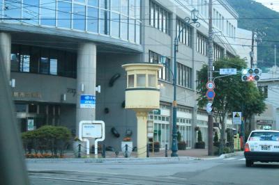 十字街の電停から交差点を挟んで残っている黄色い建物。現在は使われていませんがかつては路線同士の分岐点だったこちらの場所で線路の切り替えを行っておりその際に使用されていたといいます。こんな高さで大丈夫なのかと不思議に思うことはありますが、意外と高さはなく待ちの景色にも溶け込んでいるのではないのでしょうか?