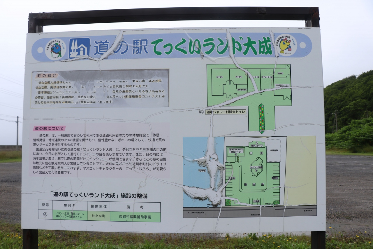 駐車場は広く一般車から大型トラックまで十分に停められるスペースがあるのですが、建物は小さく物産品や軽食(といってもアイスクリームなど)を取り扱っている売店とお手洗い、道路情報板があるのみ。北緯42度の線などもありちょっとした地理のお勉強になる部分も?日本海側に面しており天気が良ければ綺麗な景色が眺められそうです。