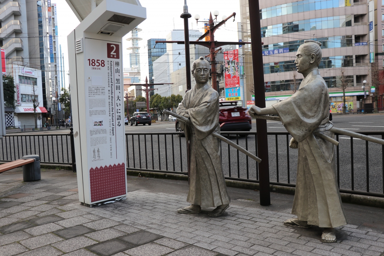 時標3を見た後でしたが、年代が戻っていることもあり帽子をかぶっていた黒田はちょんまげ姿に刀を差しているというかなりのギャップが見受けられました。反対から見れば時代の変わり目を生きていたのだという事を実感するかも・・・と思いましたが、時標4はまた戻っていて規則性はなさそうです。交差点の一角にありましたが、あまり存在感はない・・・ように見受けられました。