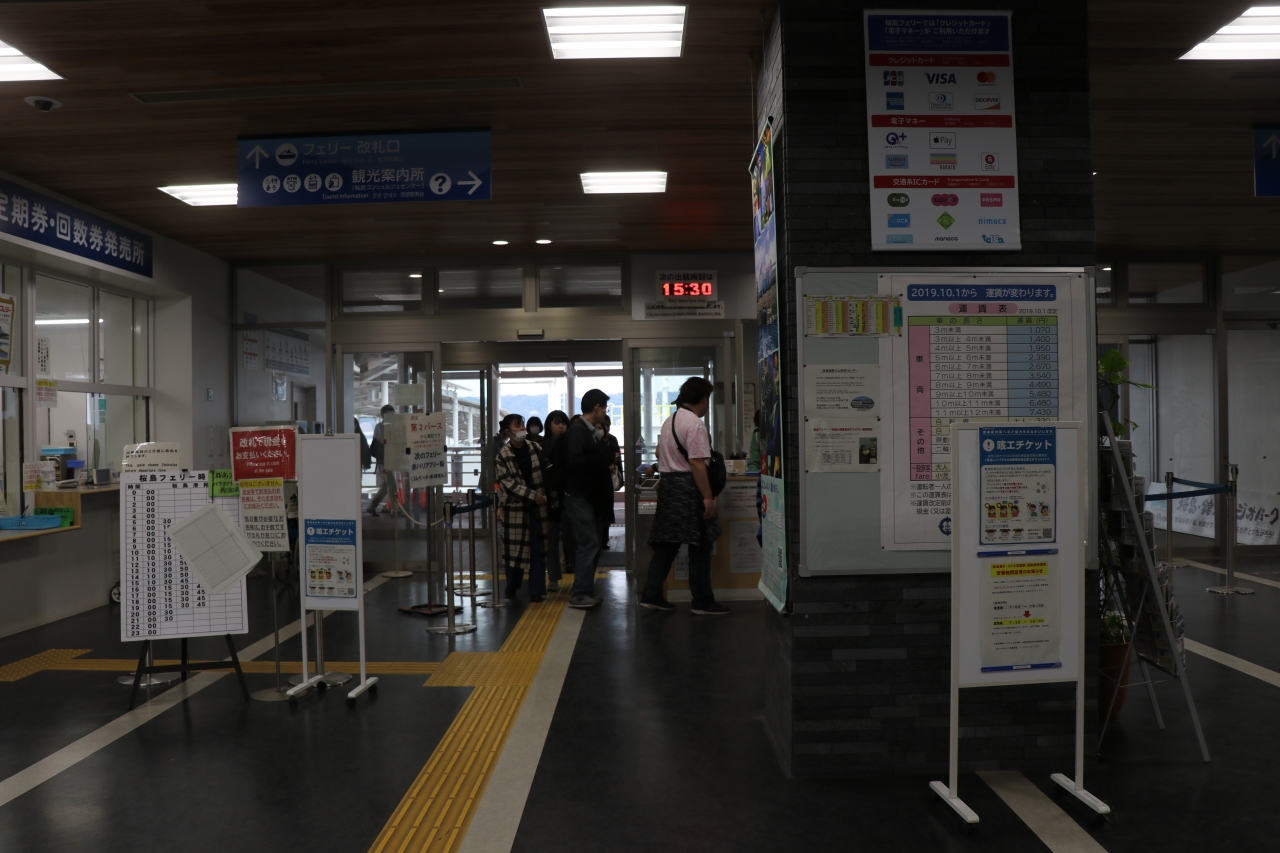 鹿児島港には運賃収受施設がないので、どちら行のフェリーも運賃の支払いはこちらにて行うことになります。(よりみちクルーズだけは異なりますが) ちょっとしたお土産屋さんや待合室もあり特に足りないようなものは見当たりません。建物はコンパクトで比較的新しく綺麗でした。