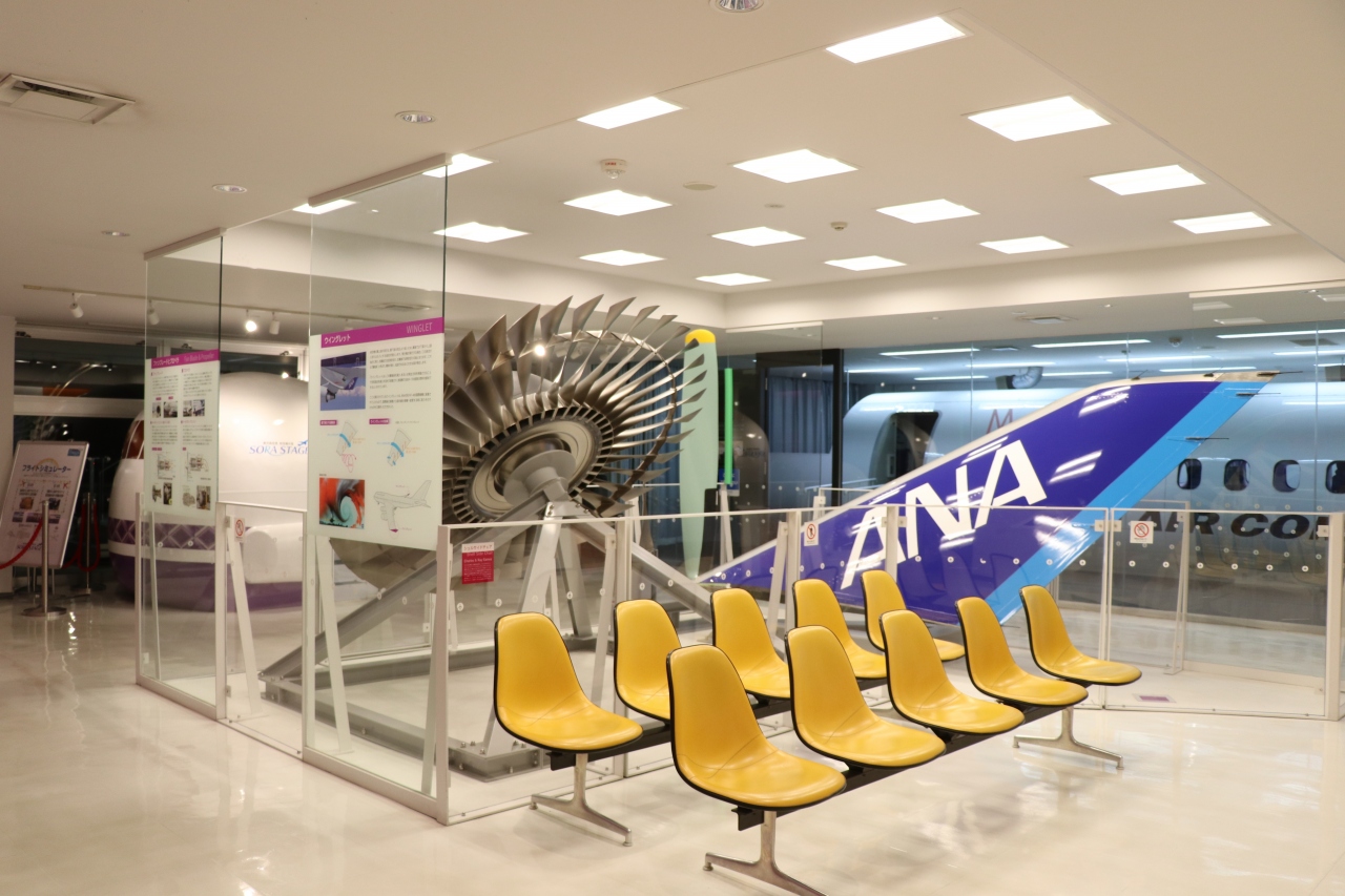 航空会社協力の元、座席のモックアップや尾翼・エンジンの一部などが展示されており航空ファンにはうれしい場所かなと思います。ターミナルの少し奥まった場所にあるのと、時間の関係か少し遅い時間にいったこともあり他に人の姿はありませんでした。子供連れなどにはフライトまでの時間つぶしによいかもしれません。見学は無料です。
