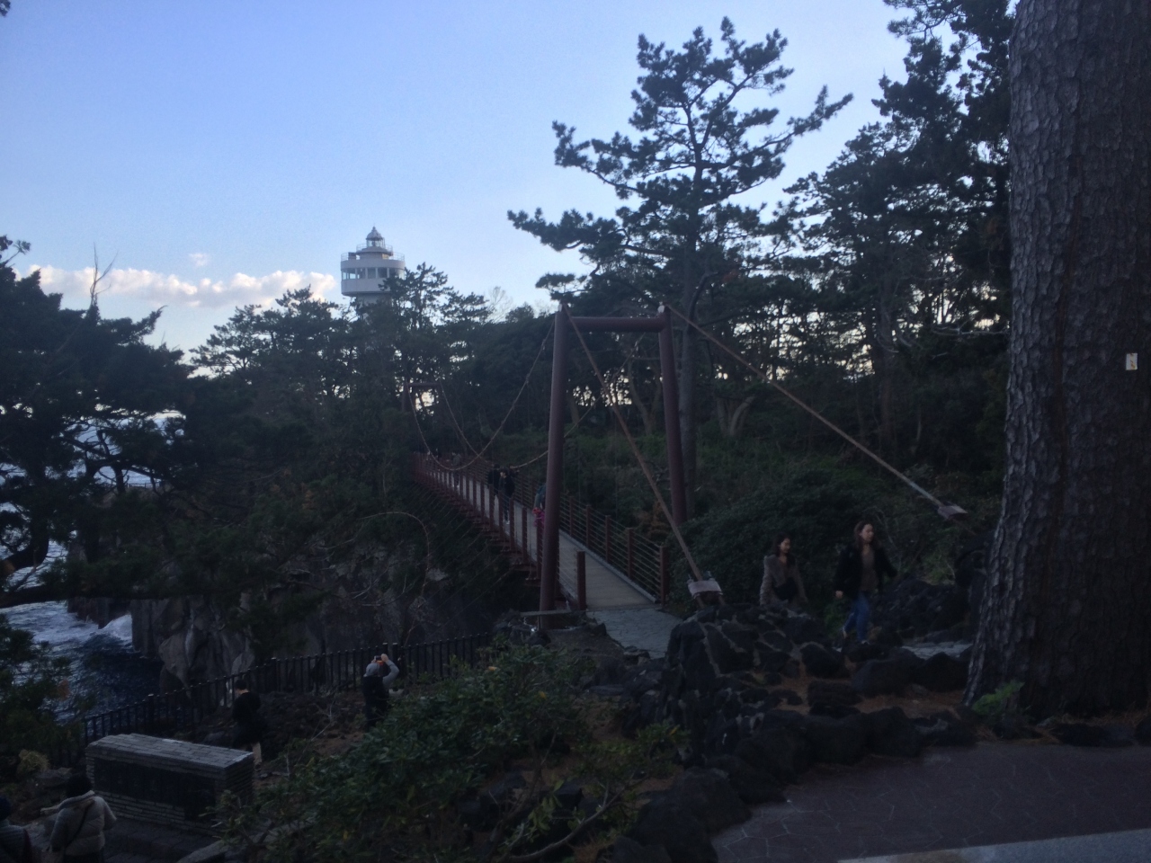 吊り橋は海面からの距離が高くのぞき込むと足がすくんでしまうほど。あまり多くの人が渡らないようにという注意書きがありますが、みなさんあまり気にしておられる方はいらっしゃらない様子。相模湾越しに初島も見えて、海を見ながらのんびりとした時間を過ごすことができました。