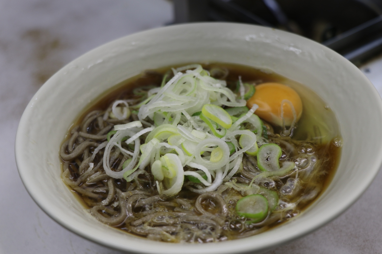 下りホームの階段の間にある立ち食い蕎麦屋さんです。利用時は生たまごトッピング無料デーだったのでありがたく追加させていただきました。乗り換え時間や列車の待ち時間など短時間で食事を済ませられるのは良いのですが、椅子席はなくスタンディングだけなので気になる方は要注意。支払いは現金のみでPASMOなどの交通系ICカードは一切使用することができません。