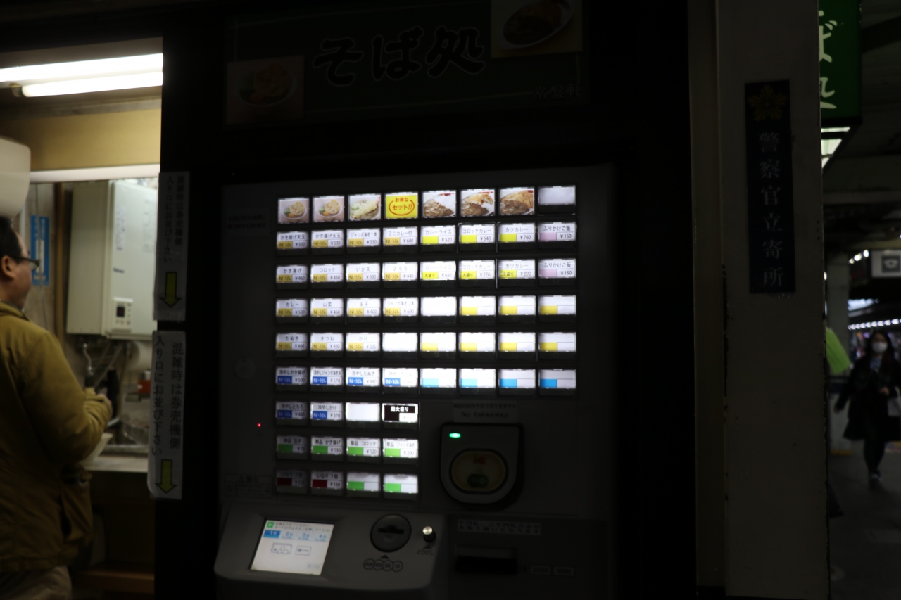 週末の昼時に利用しましたが、席はなんとか空いているものの外国人観光客が悪戦苦闘しており二台ある券売機を使うのに非常に時間がかかっていました。メニュー自体は日本語だけではなく英語や中国語もあるので訪日客にも対応しているようですが、対応しきれていないのか、たまたまそのお客さんがずっと悩んでいたのかは分かりませんが・・・