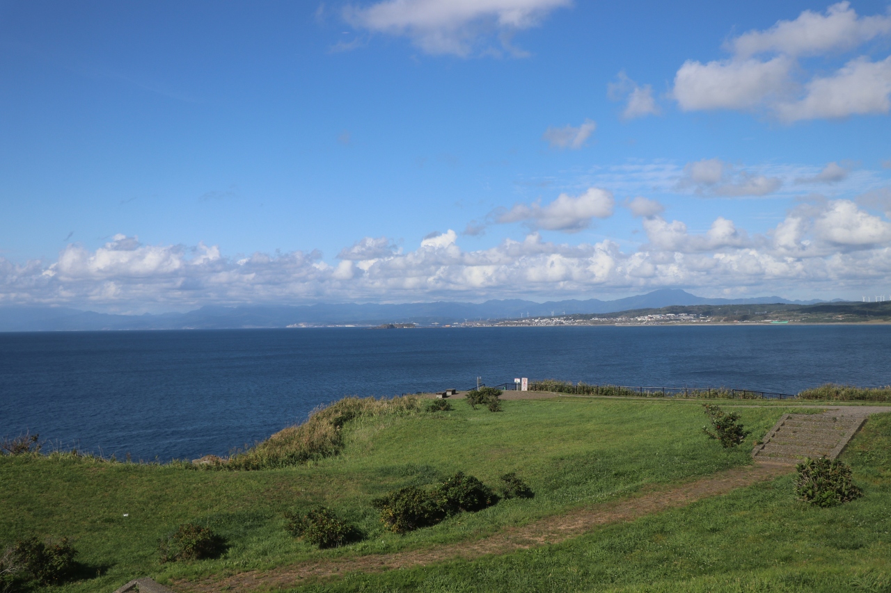 松前方面から国道228号を走ること1時間強。途切れることのない山と海にうんざりしてきたころに江差の街並みを一望するこちらの道の駅に到着。標高が高いこともあり海を挟んで江差の街並みを一望することができますが、意外と距離があったりなかったり・・・ 建物は新しく綺麗でした。