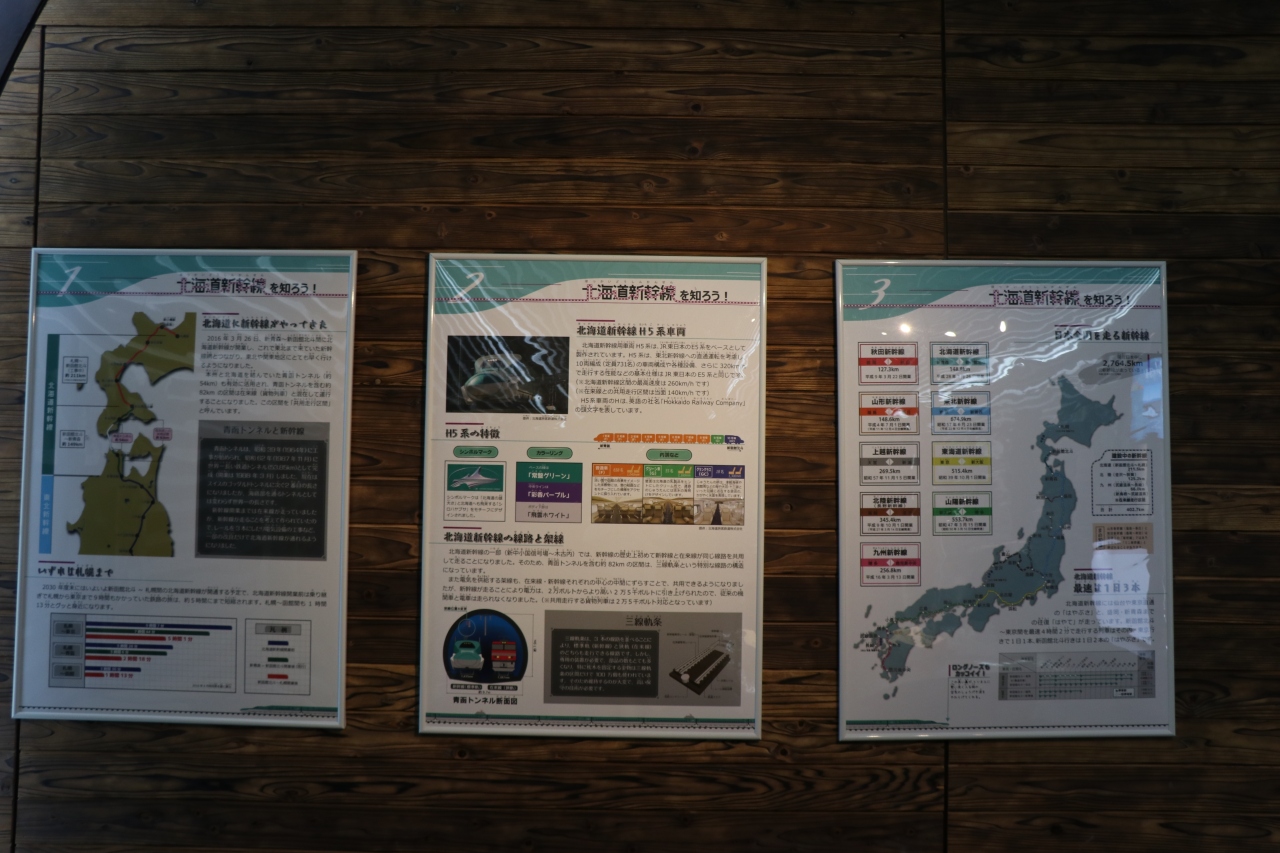 展示エリアや道南各地の土産物などを扱うお店が入っていますが、平日日中ということもあるのか人影はまばら。構内は広くゆったりしていますが、やはりもう少し活気があるとよいなぁ・・・と思ってしまいます。観光案内所は有料ではありますが、大きな荷物を預けることも可能です。