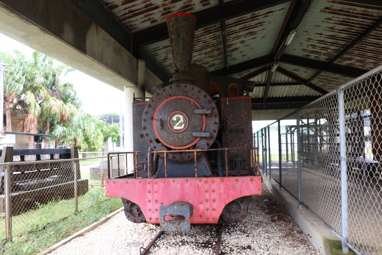 ふるさと文化センター横にある機関車です。昔からの特産であるサトウキビを運ぶために使用されていたとのことですが、当時からしてみればあると無いとでは大違いだったのかなぁと感じさせられました。屋根が付いているとはいえ、車体がさびており年季を感じさせます。