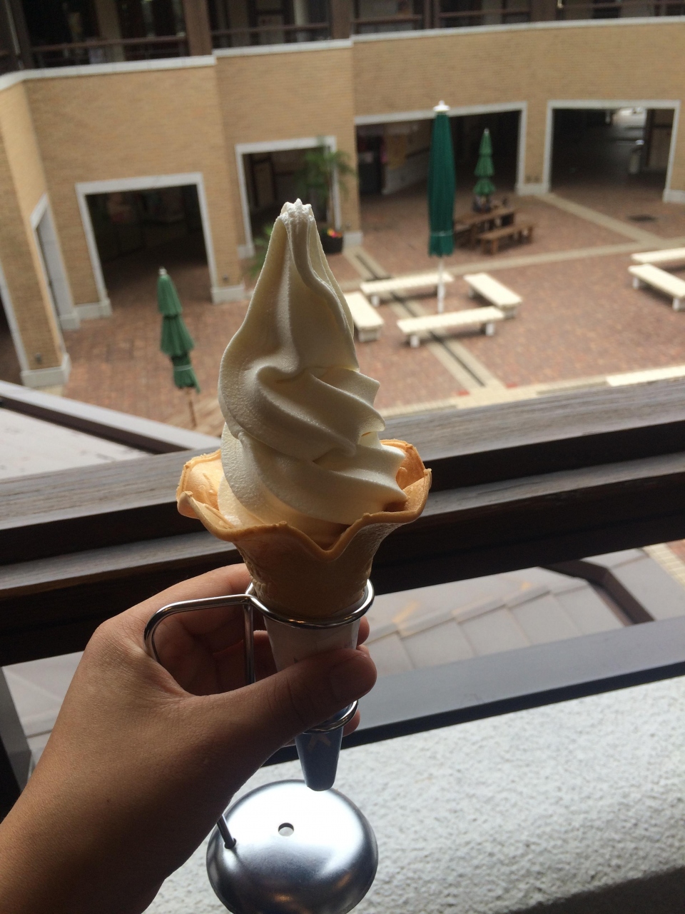 伊豆高原駅の改札から海側に歩いて50mほど歩いたところにあるカフェ。時間がない場合などアイスクリームなどの一部メニューはテイクアウトもできます。暑かったのでアイスクリームを注文し頂きましたが濃厚なバニラで非常に美味しかったです。店外には一応ベンチがるので座って食べることも可能。