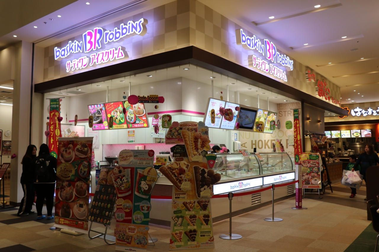 フードコートの一角にあり、買い物の後などに気軽に立ち寄ることができます。椅子やテーブルは数多くあるので席の心配はなく、(あまりないとは思いますが)別の場所に持って食べるのも可能です。種類数があるので、ダブルで頼む時はいつも何にしようか迷ってしまいます・・・