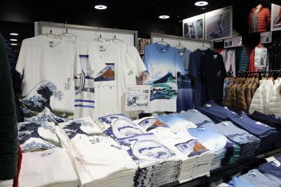 店舗の外が真っ黒だったので少々見つけるのに苦労しました。空港ターミナル内という立地を考えればそこそこの広さで、時期に応じたものを置いてあり旅行前に急遽忘れたものなどがあればこちらで調達することができます。中央の一番目立つところに葛飾北斎の富嶽三十六景の一節が描かれたシャツが置いてあり、外国人などは日本のお土産としてちょうど良いのかもしれません。