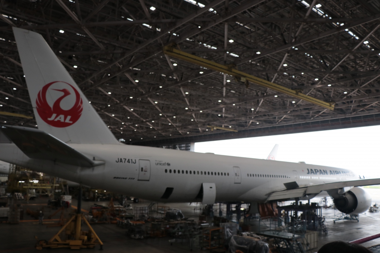 入館した後はJALの歴史年鑑や制服を着ての記念撮影など楽しい時間を過ごすことができます。工場内は繁忙期などタイミングによっては一機もないこともあるそうですが、訪問時は大型機が多く整備されている時でカメラに収まりきれないその大きさには驚かされます。担当スタッフの飛行機に対する思い入れが強いのか、JALに限らず他社の飛行機についても色々と説明してもらえた他、マニアックな質問にも嫌な顔一つせず答えてもらい大満足の見学会でした。