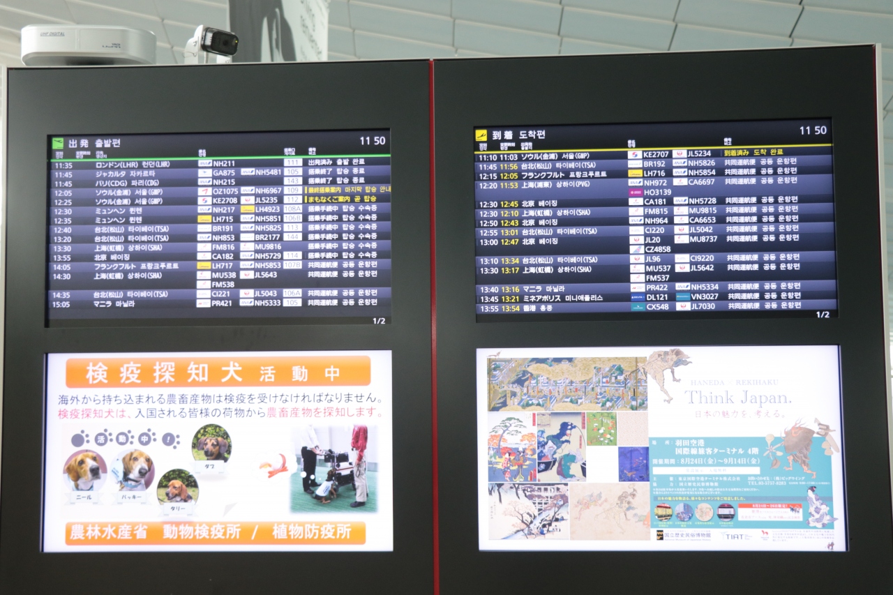 国内線ターミナルとは離れており独立しています。行先表示には北米、欧州や近距離アジア地域の名前がずらっと並び、世界の玄関口になっているのだと実感します。時間があるなら江戸小路や展望デッキなど散策してみると楽しいかもしれません。搭乗予定のある方は乗り遅れには注意です!