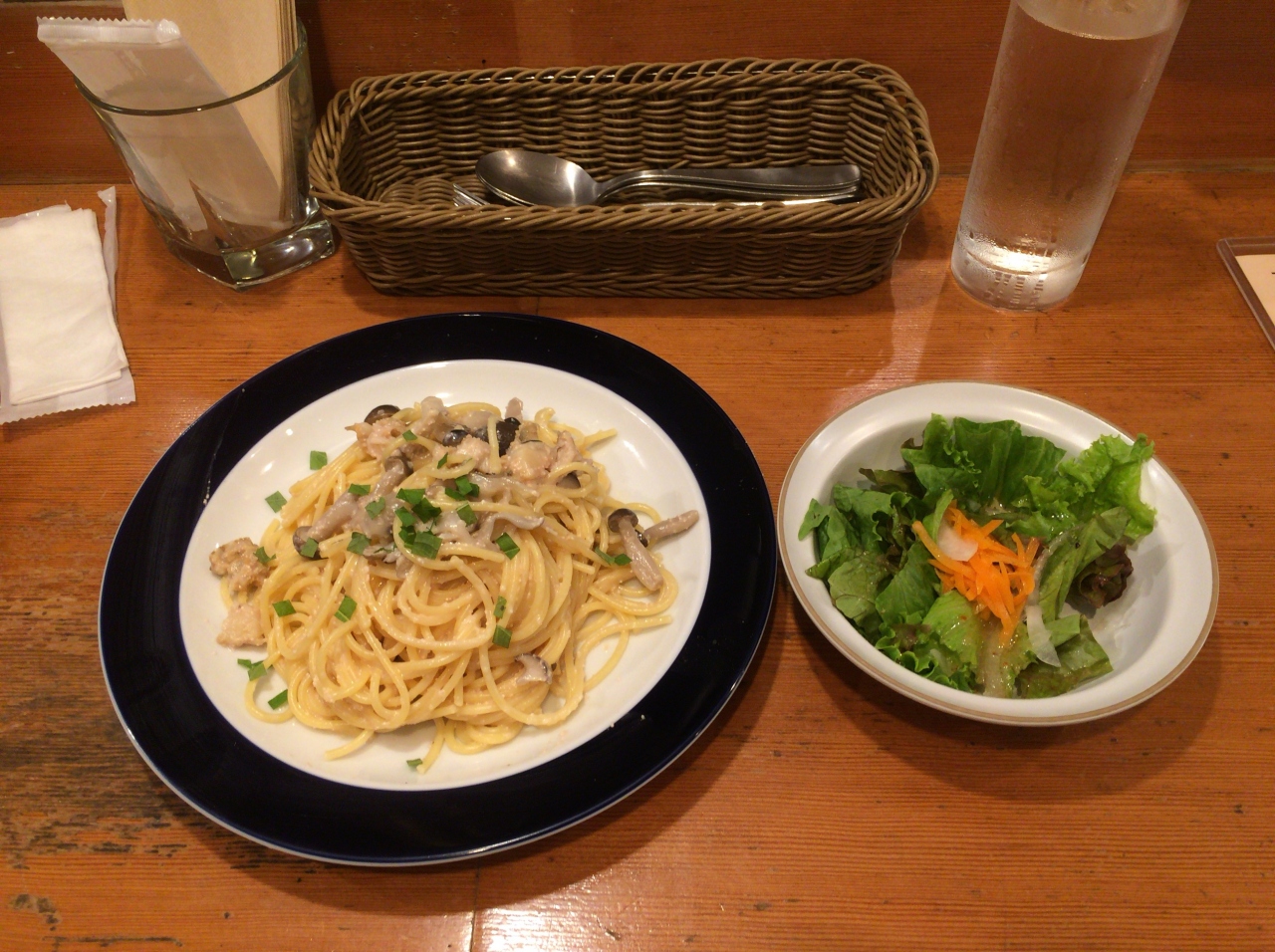 広尾駅から聖心女子大に向かう途中の道にあります。1Fにカウンター席、2Fはテーブル席になっています。ランチはパスタとサラダのセットで販売されており800円~。立地を考えれば高過ぎず、普通の値段で入りにくいお店ということはなさそうです。個人的にはパスタの量がもう少し多いと良いなぁと感じました。