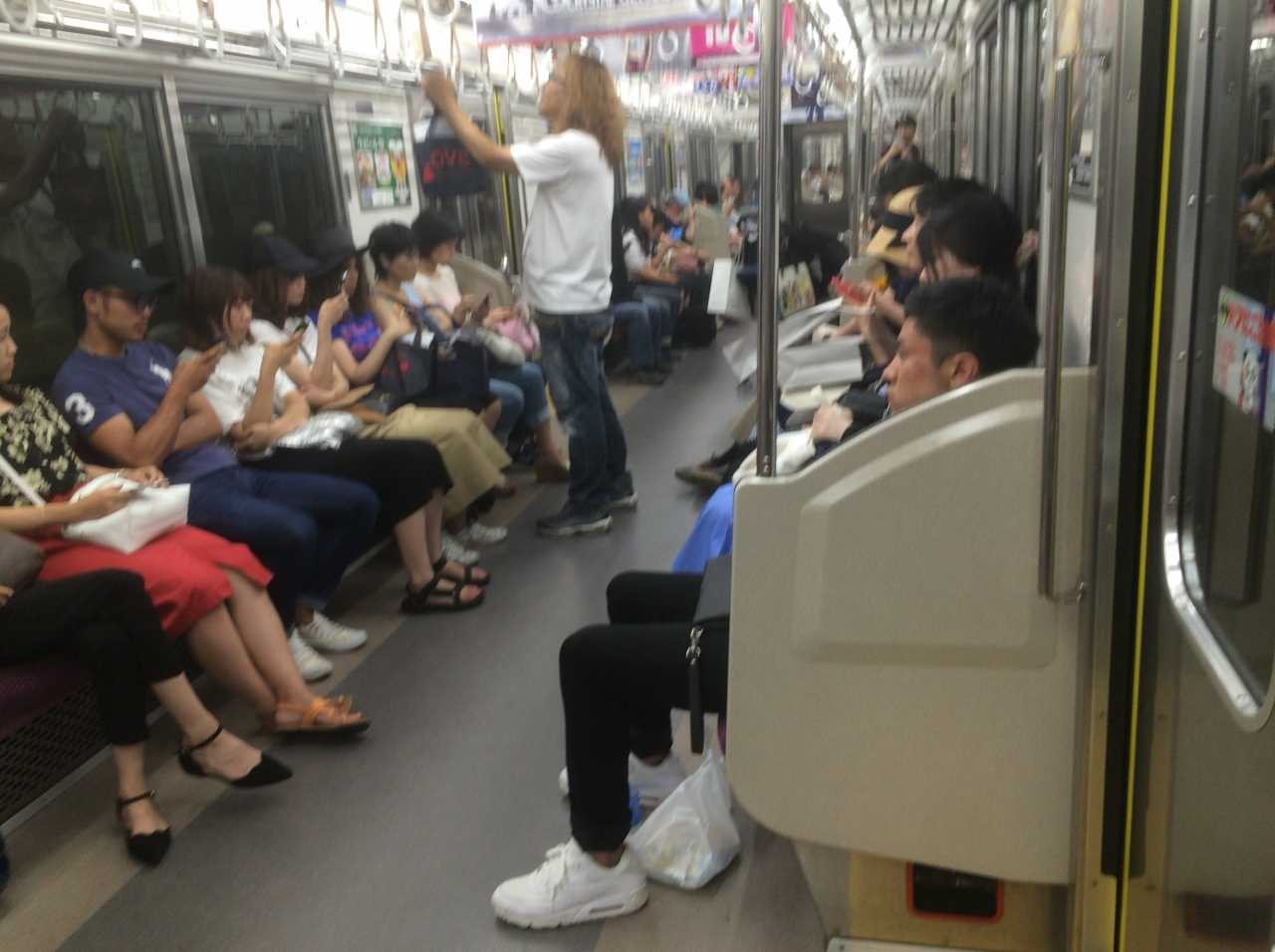 メトロ、都営地下鉄各線にラインカラーがあり、半蔵門線は紫色になっています。ラインカラーはその路線の車両に引かれているカラーになっていることが多いのですが、ここは両端で東急と東武へ乗り入れを行っているので紫色のラインが入っているメトロの車両はなかなか来ません。ホームの案内表示には時列車の車両所属会社が表示されるので、鉄道ファンからしたら面白いかもしれません。直通運転をしていることも関係しているのかもしれませんが、日中でも混んでおり座れることは少ないです。