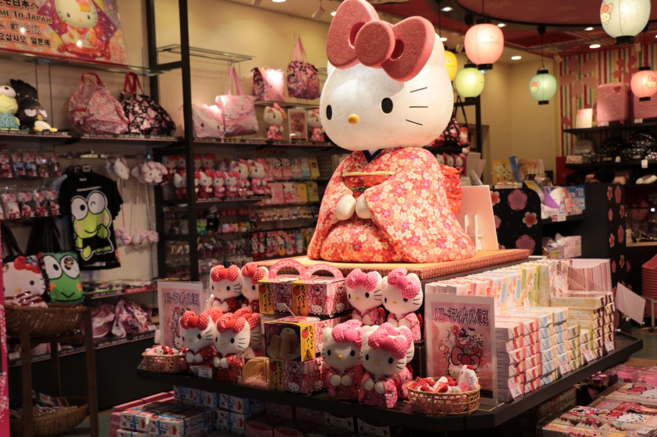 5階の展望デッキに向かって左側の少し奥まった場所にあります。遠くから見てもすぐに分かるほど目立っています。店内はお菓子やシャツ、ゲームや文房具など、キティちゃんファンならどの世代の人でも楽しめるグッズが多く置いてあります。