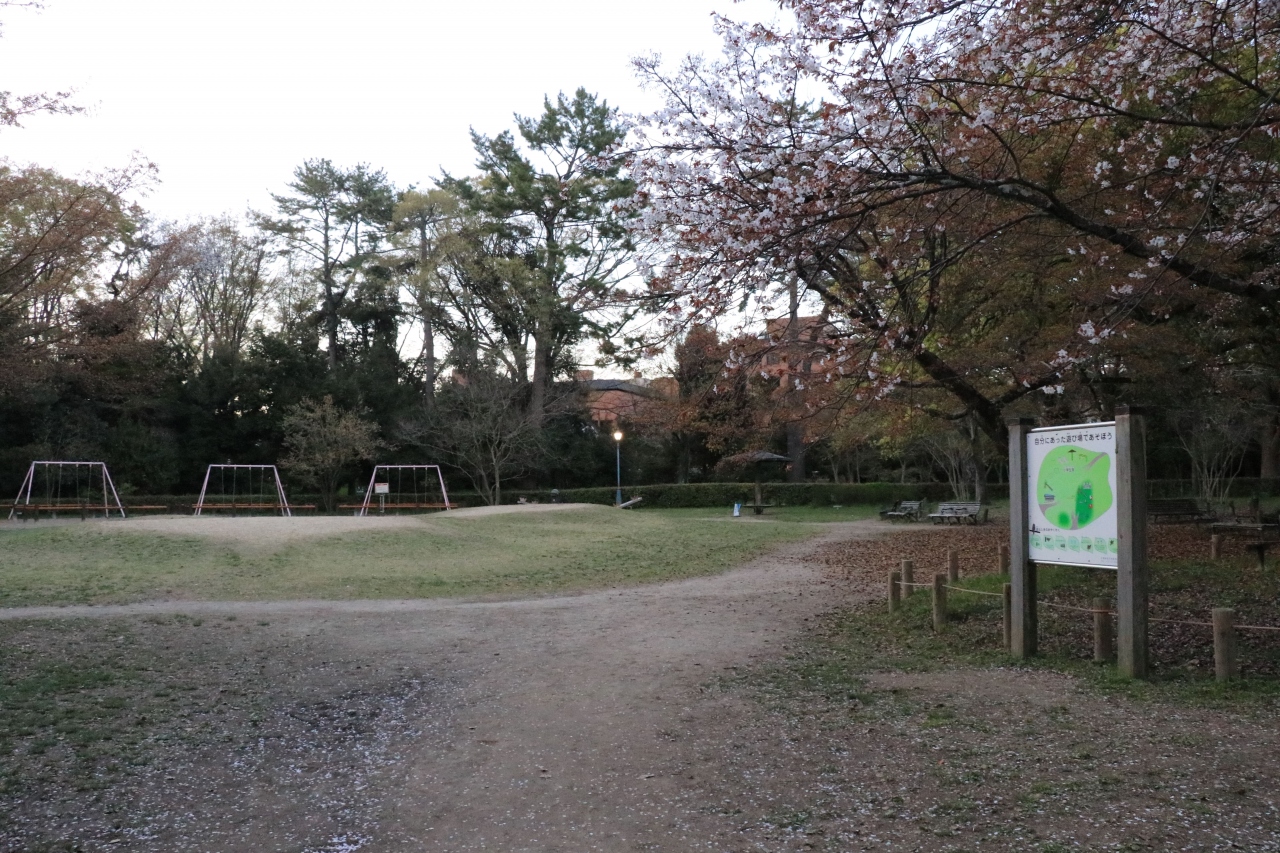 御苑内にあり一般開放されているので誰でも利用することはできますが、平日夕方だったせいか人の気配はほとんどなし。地元住民ならまだしも子供連れの観光客で気軽に使うことができるのか・・・?という疑問はさておき、場所のせいかスペースは広く、小学生と未就学児など年代によって場所が分けられているのは少しでも安全に遊べるようにとの配慮なのかなと感じるところです。お手洗いもあるのでその点でも安心。ベンチも設置されているので歩き疲れた際の休憩場所にするのも悪くなさそうです。