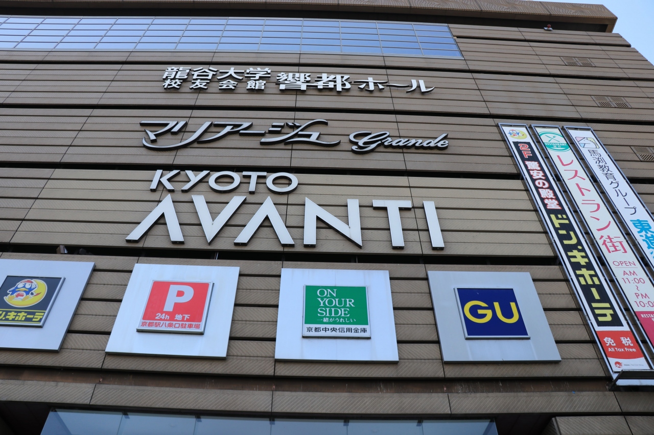 お土産やレストランが多い京都駅近郊の各商業施設ですが、こちらはGUやドンキ、アニメイトや大学予備校などどちらかというと地域住民に根差した店舗が数多く入っています。京都駅の八条口からは交差点一つ挟んだ先にあり、ファストフードなどをはじめとする飲食店もあるので駅ナカが混んでいる場合や手軽に安くサッと食事を済ませたい時に重宝するのかなといったところ。お客さんの数も(周辺と比較して)少ないので人混みを避けたい方などにもオススメできそうです。