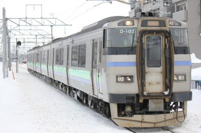 小樽~岩見沢の区間内で運行されています。車両にもよるのですが窓を背にして座るベンチ型シートと2列進行方向向きのシート車両がありどちらが来るかは時間次第。手稲~札幌か札幌~江別で快速運転を行う列車の2パターンがあるので、同じ列車でも停車駅にはよく注意してください。