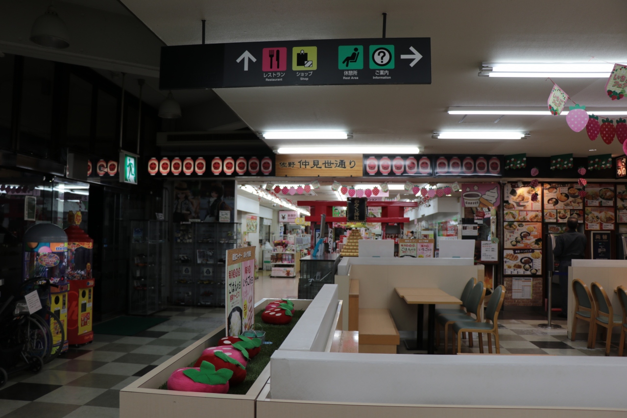 在来線改札口のある2Fにはお土産屋が中心、1Fにはその他のお土産屋以外にスーパーや飲食店があり観光客があり観光客から地元住民まで多くの人が利用していました。コーヒーブレイクできる場所もあったので、列車やバスの待ち時間に余裕があれば立ち寄るのも一つの手です。