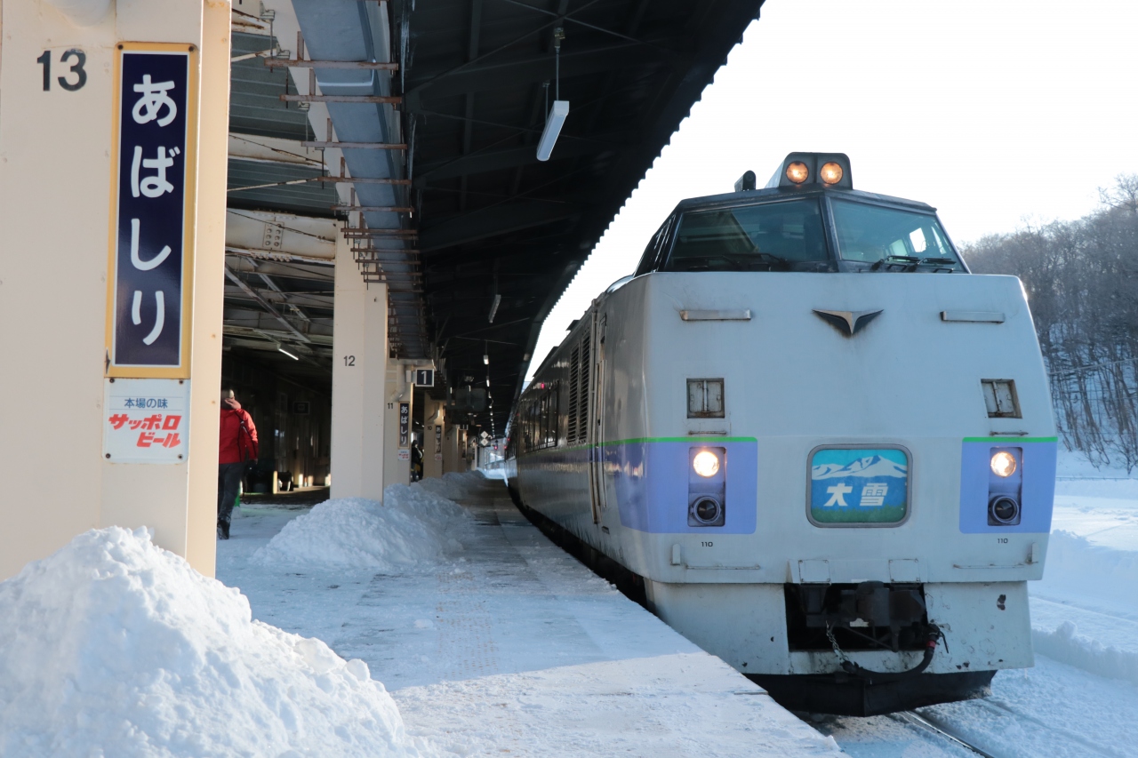 以前は4往復全てが「オホーツク」として札幌~網走を結んでいましたが、先般のダイヤ改正で2往復が旭川発着の「大雪」として運行されるようになりました(車両の変更はありません)車両は気動車ですが、窓枠下にコンセントが付いているので利用可能です。旭川~網走だけでも4時間かかりますが、飲み物や弁当などの車内販売は全くないので、必要な場合は乗車前に購入が必要です。(自販機だけはありましたが)