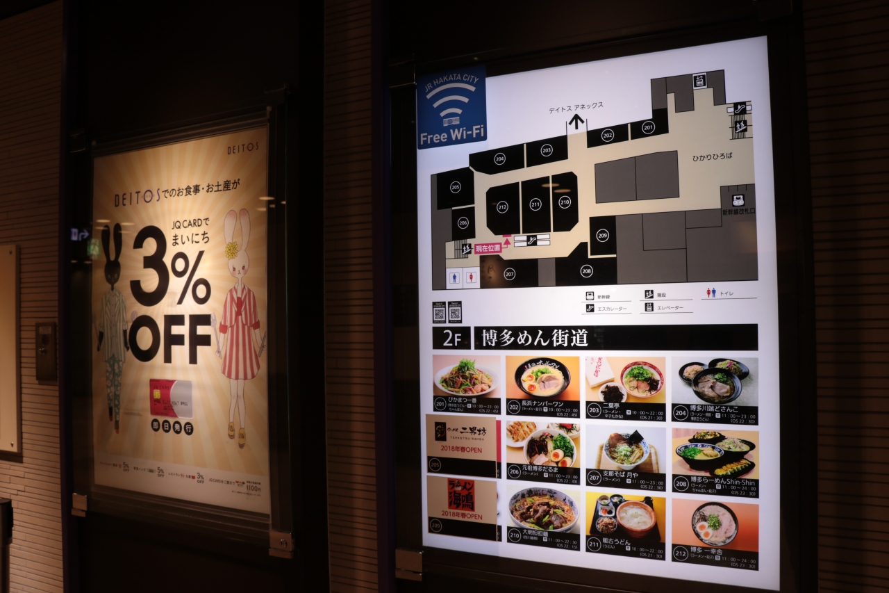 JRの改札口すぐ横にあり飲み物や弁当、お土産品などが置いてありました。よっぽどすぐ必要ということでなければ、出発階に移動すれば多くのお土産屋や飲食店があるので、列車乗車前ということでなければ特にここで・・・という必要もなさそうです。