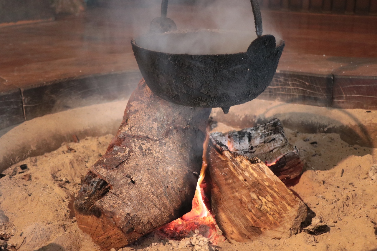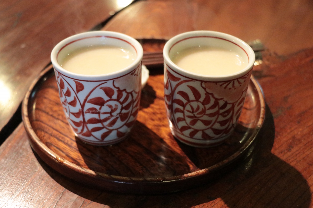 日本家屋の中にあるいろりの前で甘酒やみたらし団子を食べるのは風情があって良かったです。寒い日だったのと雪が残っていたため室内で過ごしましたが、外にも椅子とテーブルが設置されています。- 旅行時期