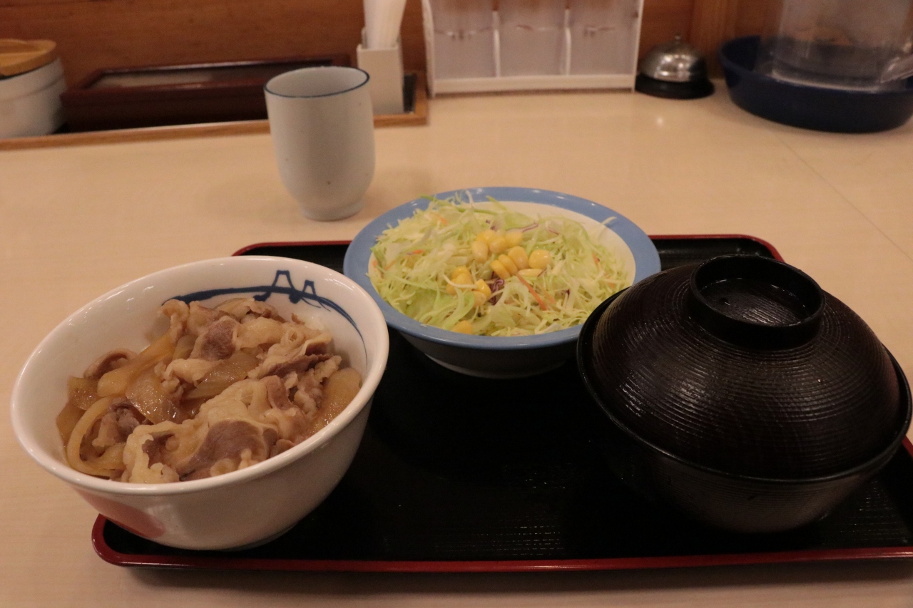 駅を出てすぐのところにあるので列車の待ち時間などで簡単に食べることができます。店内は客席スペースが広く、テーブル・カウンターはどちらも多くあり19時頃の利用でしたがすぐに席に着くことができました。牛めし以外にも野菜サラダなど単品メニューが豊富にあります。
