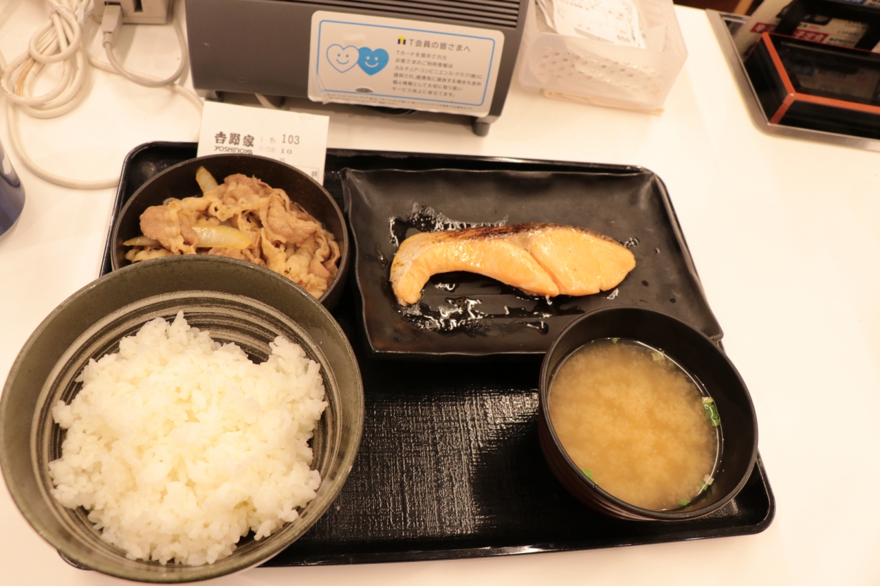 味や値段は通常の吉野家と変わりありません。店内のスペースはそこそこあるのですが、カウンター席とテイクアウト待ちの場所があり、テーブル席はありません。訪問時は利用できませんでしたが、、2Fにも席がありどこが空いているのかモニターで分かるようになっていました。