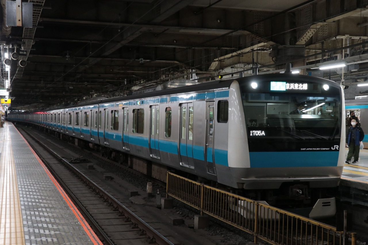 東海道本線・東北本線(宇都宮線)を補完するように走っている路線です。本数が多いのが特徴で、最混雑区間では日中でも5分ほど待てば次の列車が来るので時刻表のチェックは必要なさそうです。車両や座席は他の路線と同じようなもので乗り心地なども特段気になるようなことはありませんでした。
