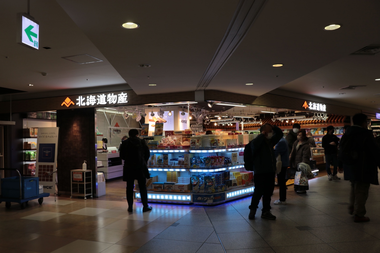 新千歳空港のターミナル内に数多くある土産物屋の中の一つ。カニなどの海産物も販売しているようで商品のバラエティは豊富です。営業時間も長く使い勝手は良いのではないのでしょうか?