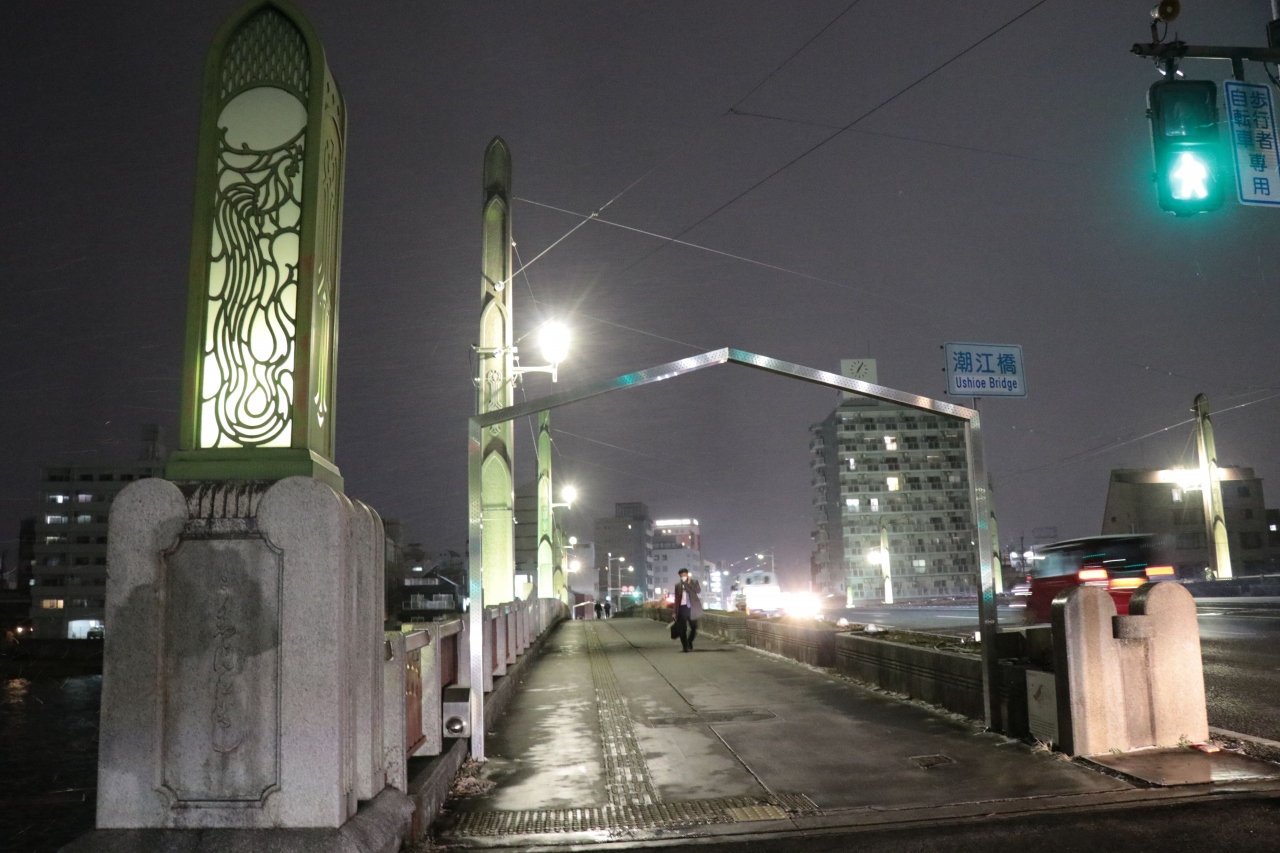 はりまや橋から少し南に進んだ鏡川に架かる片側2車線の橋。左右両側に歩行者用のスペースが取られているので安全に通行できるようになっている他、中央には路面電車も通り撮影スポットとしても使えるかもしれません。橋の前後の土地が低くなっているのか大き目の船舶が通過するのか分かりませんが、中央部分がやけに盛り上がっているのが特徴的かなと感じるところです。