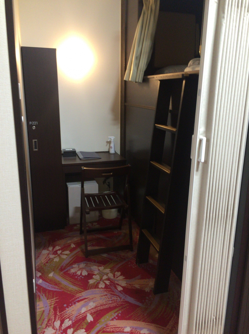 最近出来たというカプセル式のベットにテーブルやクローゼットなどがあるタイプの部屋に宿泊。