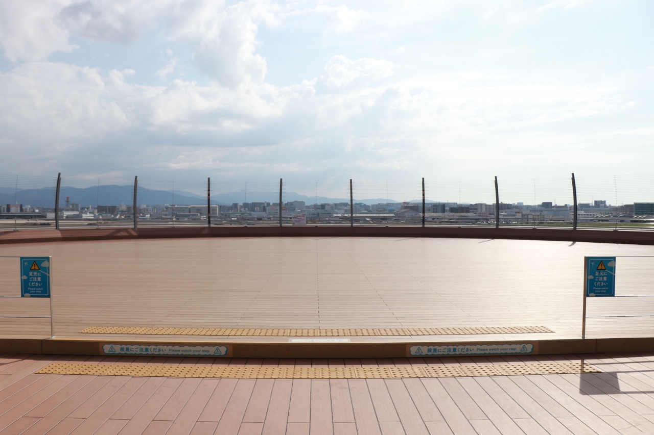 金網式で航空機の撮影にも便利なようになっています。ターミナル自体が滑走路の端っこにあるため、風向きによって離陸or着陸と分かれるのでお目当ての機体がある場合は事前によく調べておくと良さげです。階段で別フロアへ降りることもでき、以前のデッキと比べて広々として快適に過ごせるようになったなと感じています。屋根がないので悪天候時は注意が必要です・・・