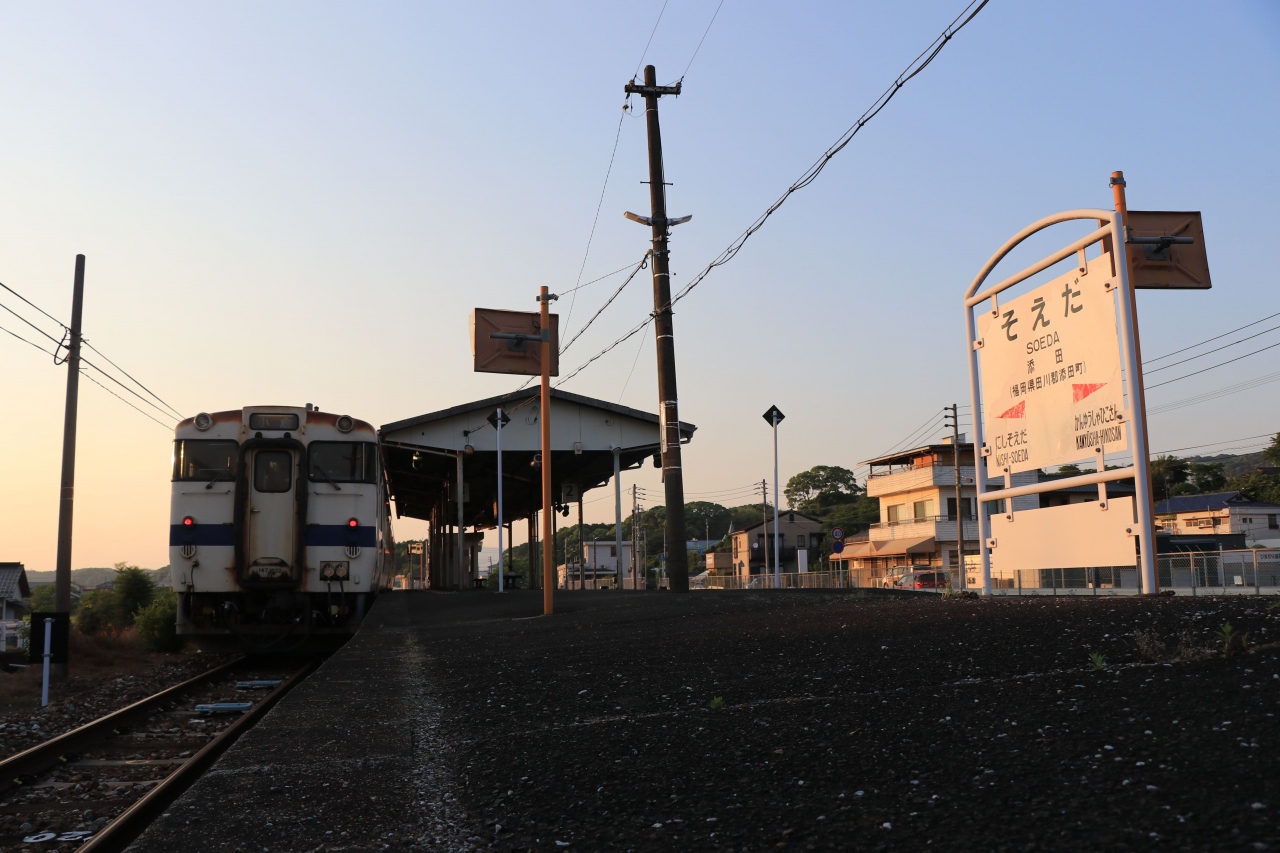 災害により一部区間で運休によるバス代行輸送が行われていましたが、この度正式に添田~夜明の廃止が決定。鉄道駅の終点となる添田駅は広い構内に使われなくなった機器や線路が置かれている状態で寂しい光景が広がっていました。週末の夕方だったせいか車内の乗客は数えるほどしかおらず(小倉に近づくにつれて少しずつ多くなってはきましたが)費用のかかる鉄路での復旧断念というのも致したがないものかもしれません。