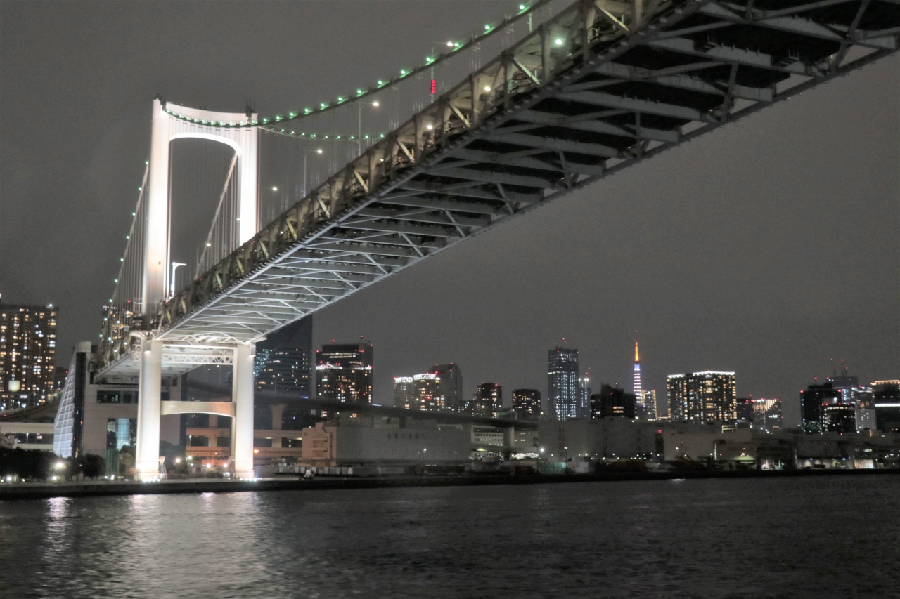 お台場エリアから眺めるのが定番かなと思われますが、今回は船に乗って真下を通過していきました。何か新しいことを見つけた・・・わけではありませんが、定番とは違ったこんな眺め方も悪くないかなと思わせられます。周囲のビル群と一緒に眺めていると「東京に来たんだな~」と感じる場所の一つとなっています。- 旅行時期