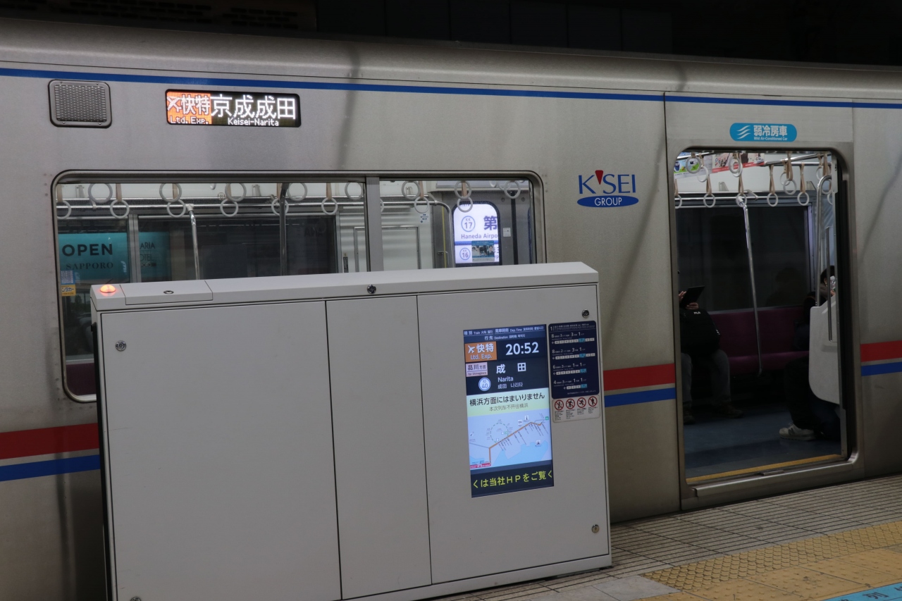 羽田空港からの移動では安くて快適な京急線を利用。ホームに停まっていたのが泉岳寺から都営・京成線を経由して成田方面へと向かう列車で「へぇ~成田空港まで行く列車か~」などと思っていたのですが、行先はまさかの「京成成田」。成田空港まであと一歩なのにややこしいんじゃ!と突っ込んでしまいそう。