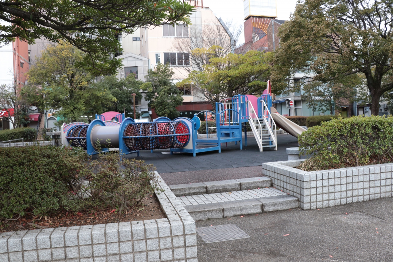 国道に面した大きな公園で、最初は「遊具も一応あるけど隅の方に追いやられているしなんでだろう?」と思っていたのですが、のちに夏のよさこい祭りで演舞場として使われると知って納得。数段分だけですが舞台として高くなっている箇所もあり市内中心部ではありますが多くの人が過ごせる場所となっています。